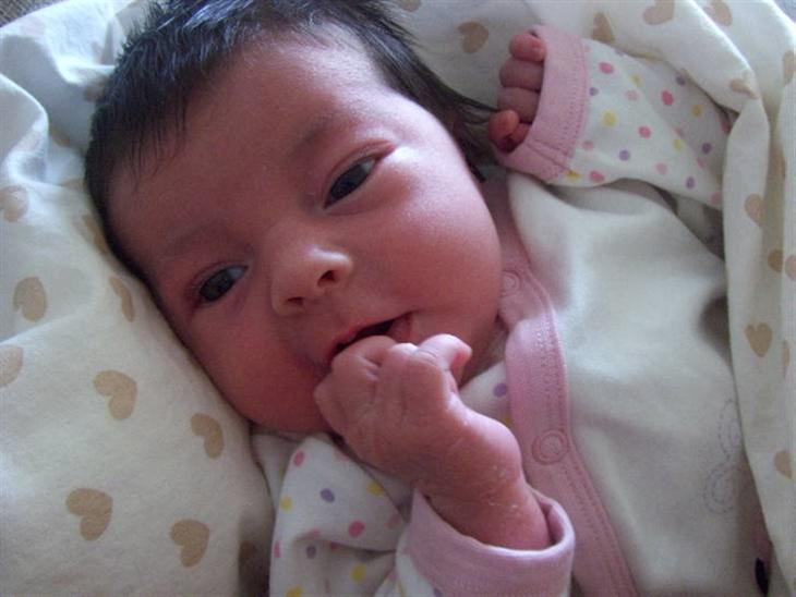 Tak for din søde besked... Jeg er selv MEGET forelsket i hende:-)vHun er bar for dejlig.. Hårpragten har hun efter sin far... Han har også meget mørkt hår og brune øjne!