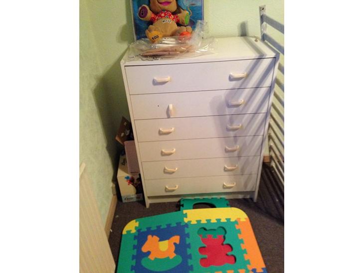 kommoden fik vi gratis, malingen til den har vi fået gratis, det er en form for gammel lilla kalder jeg den den fik også grunder, men det fik jeg også gratis.det eneste jeg har købt til den er greb og det kostede 14 kr i Ikea.