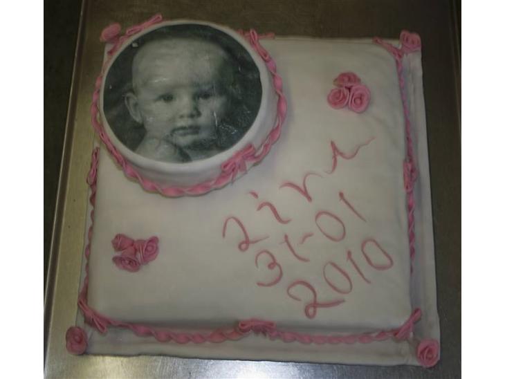 dvs billede af hende ( som desværre gik helt galt da det kom på ) er købt over nettet. og så har jeg købt fondanten i en kage butik samt noget pink farve som jeg så har indfarvet det lyserøde fondant med..