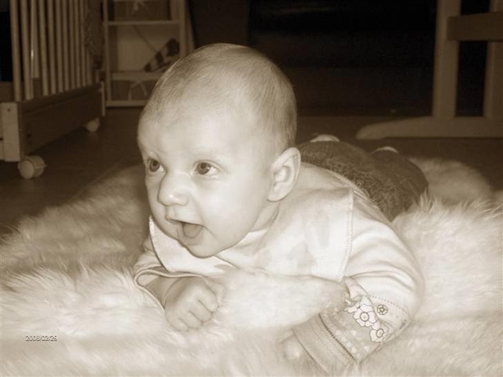 Hun er jo så lille endnu... men er godt med , når storebror er i nærheden og vil snakke lidt..... er begyndt at grine højt..... trille rundt....