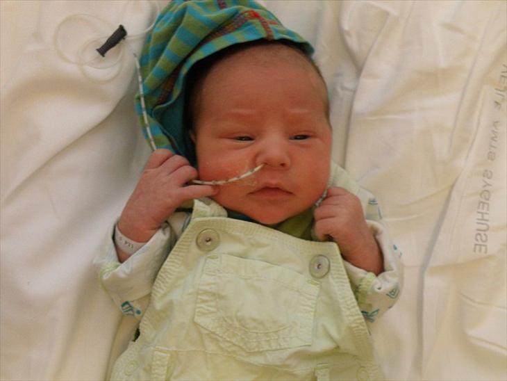 han har haft en meget hård start på livet han blev født med lungebætendelse og skulle derfor ligge i kuvøse, efter tre dage kolapsede hans ene luge så han skulle ligge i dræn som han gjorde i 4 dage, der efter blev han rask men begyndte at tabe sig, hvor de så mente han var allergisk over for mælk så han skulle have noget specailt mælk..