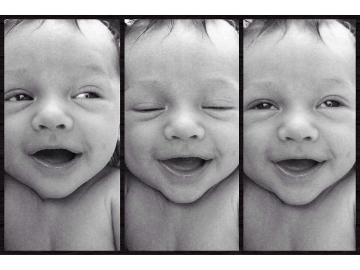 Han er en glad dreng <3. Piver når han har pruttet er sulten eller utilfreds som mange andre babyer ;) .